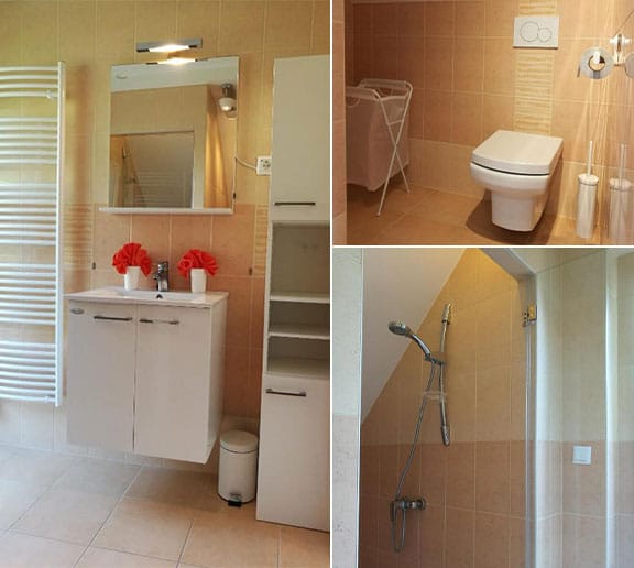 Bathroom size: 10m², separate modern furnished bathroom with a shower.